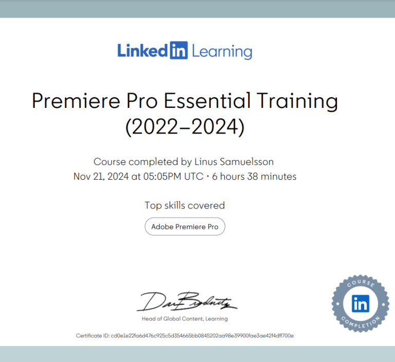 Premier Pro Essential Training Certificate